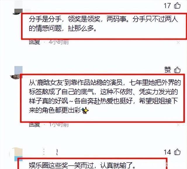 前辈们对她演技的肯定是看在眼里的,而粉丝们更是哭的不能自已了。 毕竟她这一路走来,虽然一直在用作品说话,但头上顶着的依然是“鹿晗女友”的标签。